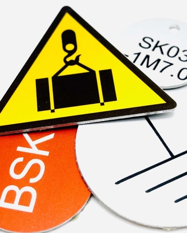 We manufacture BMA / BSK signs in aluminum or plastic, according to DIN 14675. Depending on the requirement or customer specification, our team is available to answer questions. The signs can also be manufactured outside the DIN according to customer requirements in all shapes and colors. Thanks to a laser system and CNC milling machines, we leave no wish unfulfilled. The back of the signs is available blank, with 3M adhesive surface, or magnetic.